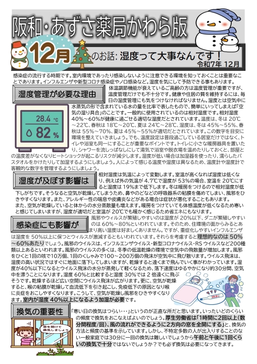 昨年末からインフルエンザをはじめとする新型コロナウィルス感染症・マイコプラズマ肺炎感染症が一気に流行致しました。同時に気温の低下と乾燥する環境になっております。十分に感染症拡大に注意が必要となっております。感染に注意してお過ごしください。